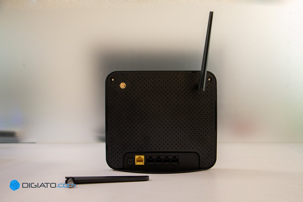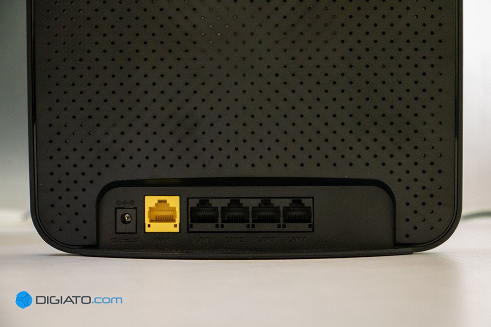 در نهایت به درگاه ها می رسیم که پشت بدنه قرار دارند، یک درگاه برای اتصال آداپتور، یک درگاه WAN و چهار درگاه LAN. درگاه USB نیز در این سطح قیمت ویژگی مرسومی به حساب نمی آید و اثری از آن روی بدنه به چشم نمی خورد.
