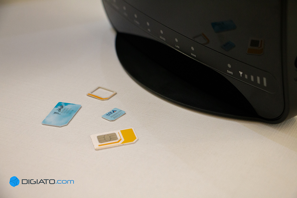 این روتر مثل بسیاری از مدل های دیگر با سیم کارت هایی در اندازه معمولی (سایز مینی یا استاندارد) پشتیبانی می کند (سیم کارت هایی که سالیان دور در گوشی هایی مثل نوکیا ۱۱۰۰ و سونی اریکسون ۸۱۰ قرار می دادیم) پس اگر روتر شما نانو یا میکرو باشد برای قرار دادن آن داخل روتر به یک آداپتور یا پوکه ی خالی سیم کارتی دیگر احتیاج دارید.